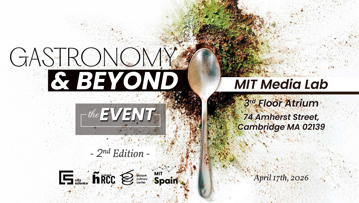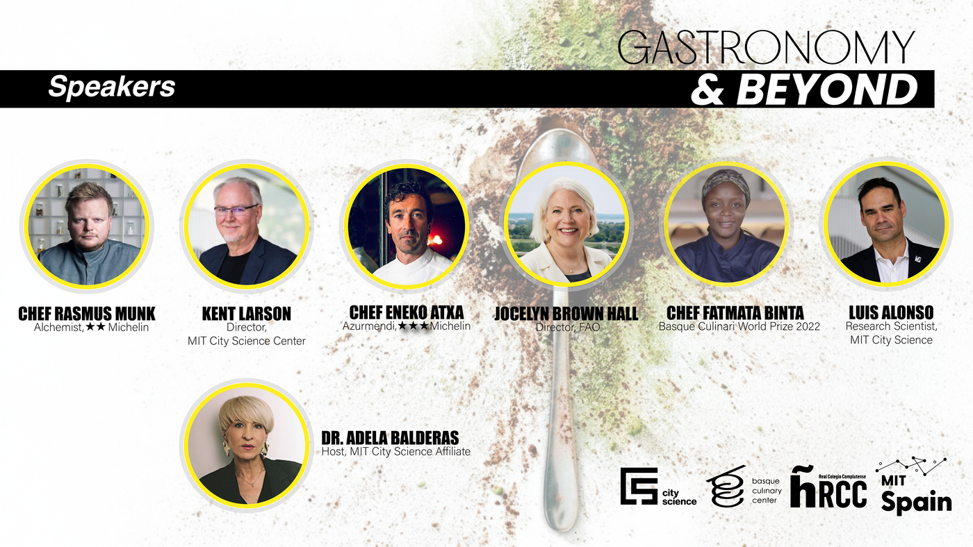 The event features Kent Larson (MIT Media Lab), Chef Eneko Atxa, Chef Rasmus Munk, Jocelyn Brown Hall (FAO), Chef Fatmata Binta (Dine on a Mat), Luis Alonso (MIT Media Lab), and with Dr. Adela Balderas as host and moderator. Through keynote talks and a closing debate, speakers will share their perspectives on what “beyond gastronomy” means—and how it can help shape more sustainable, inclusive futures.