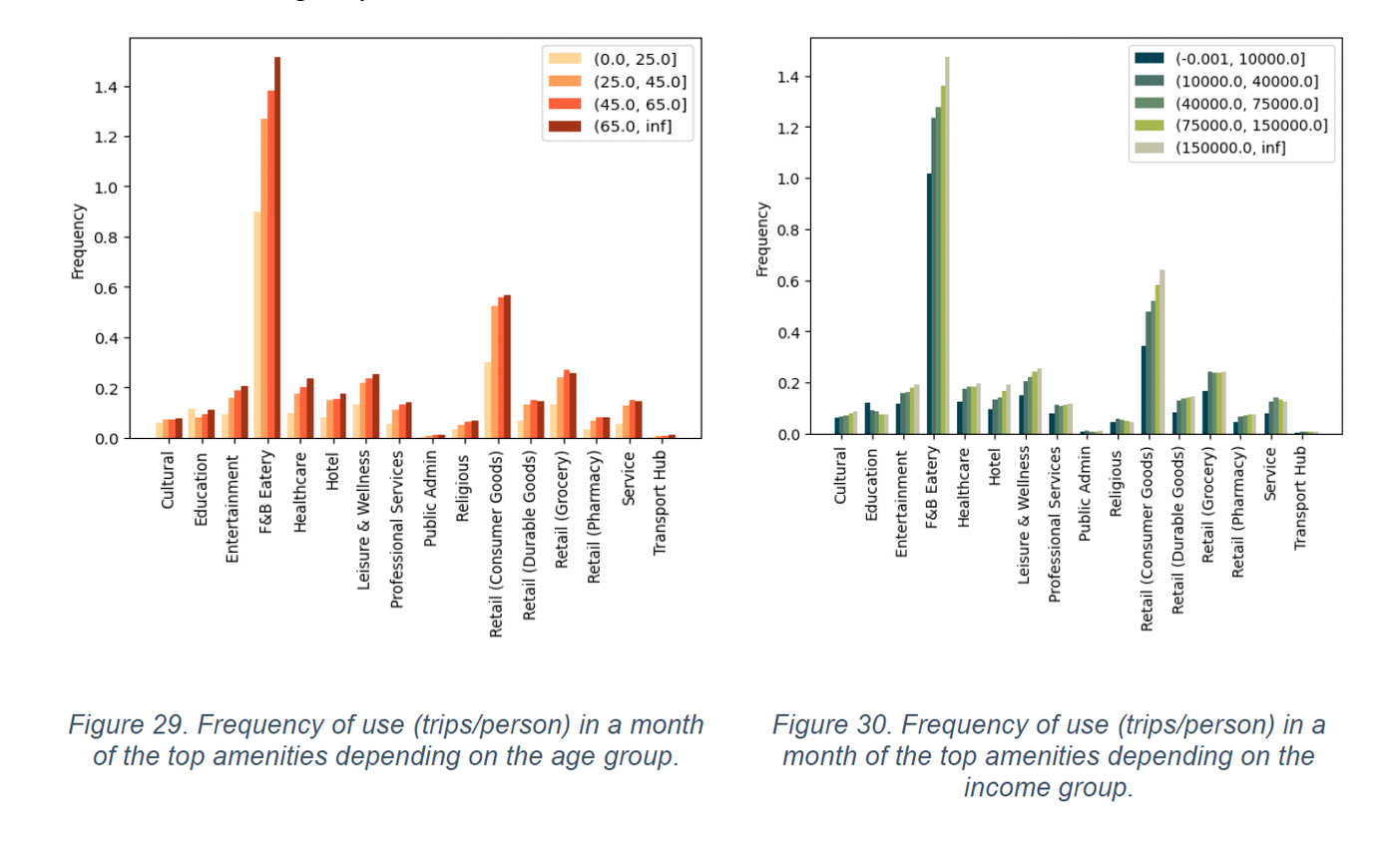This project explores how the spatial distribution of urban amenities influences walkability, mobility patterns, and neighborhood livability. Using mobility data and urban analytics, the research identifies optimal distances and quantities of everyday amenities—such as schools, groceries, healthcare, and culture—to support walkable communities, and the 20-minute city model.